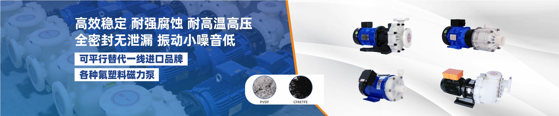耐強腐蝕,進出口法蘭一體成型專利滴水不漏;采用欽鐵硼高效強磁不消磁,內(nèi)磁葉輪體成型不爆磁;多種泵頭材質(zhì)、流量大震動小、噪音低,可另配“智能三防保護裝置”,拒絕空轉(zhuǎn)損壞。